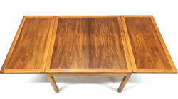Wooden extension mechanism. Rounded & tapered solid teak legs.