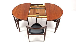 Arne Hovmand Olsen designed this model 23 circular dining table diameter 120cm with two extending leaves each 50cm for a max
