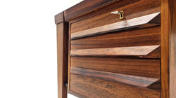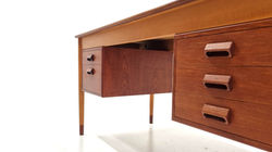Often sold as a Kai Kristiansen desk but is in fact designed by Arne Hovmand Olsen in 1954 for Feldballe Møbelfabrik before Kai joined them in 1958. Kai does not wish to take credit for this one.