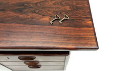 Four drawers with the easily recognizable signature FM eyelid pulls. Comes with the original key, of course.